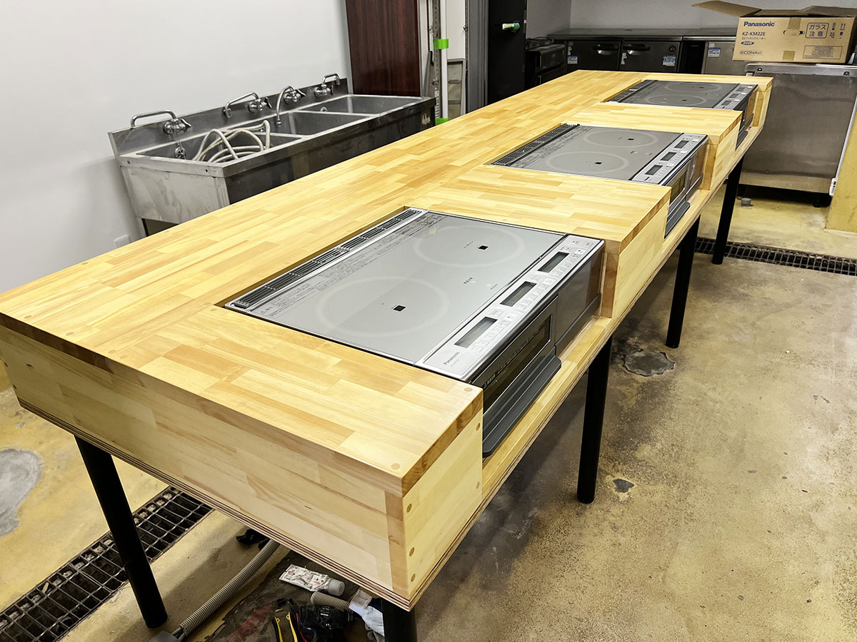 2人でキッチンに立つことが日常です。デザインや機能の云々ではなく、十分な作業スペースが絶対条件でしたので天板サイズを幅3,000mm/奥行1,000mmとしました。このサイズになるとメーカー既製品では高すぎて購入は厳しいためオリジナルで制作しました。